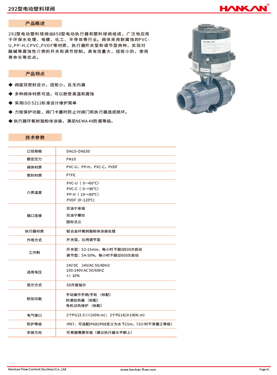 292型电动塑料球阀